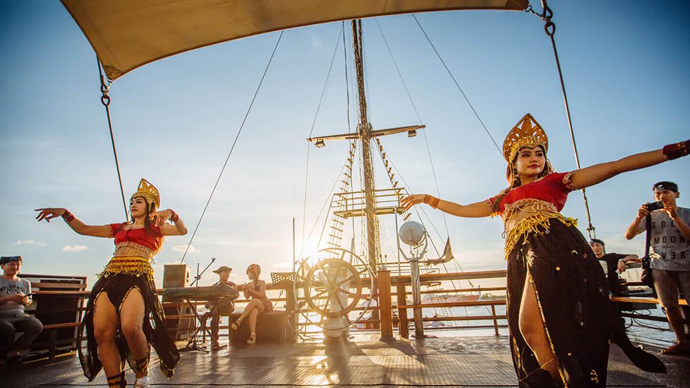 Pirate Dinner Cruise, merupakan paket makan malam di atas kapal Phinisi bertemakan bajak laut…..Wow…..dilengkapi dengan accessories Bajak laut acara dinner anda akan tambah special sembari menyaksikan matahari terbenam dipadu dengan live music, fire dance, sexy dancer, dan games yang di pandu oleh para kru. Keliling seputaran laut Benoa selama kira kira 2 jam sangat cocok dan romantis untuk pasangan yang lagi honeymoon..