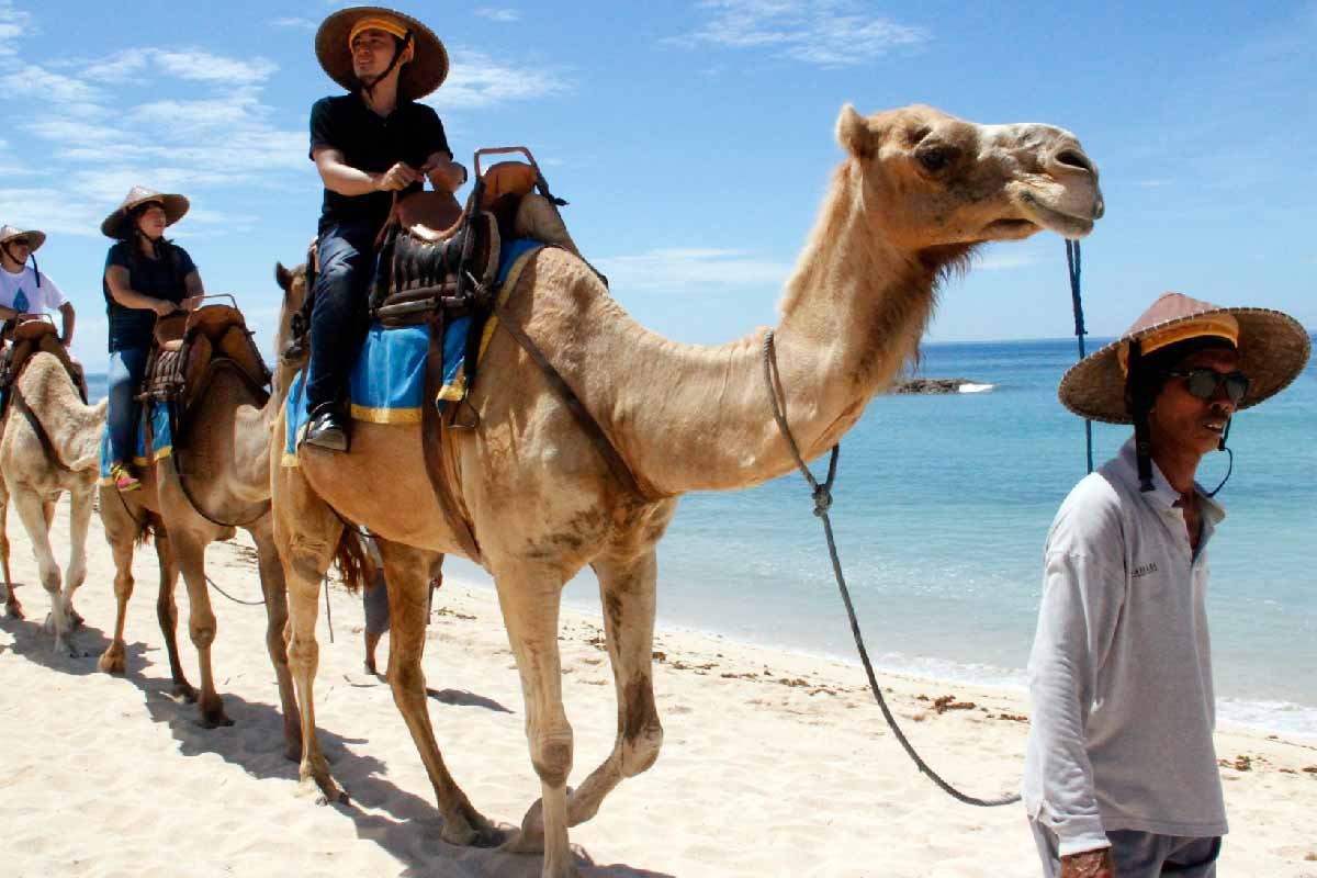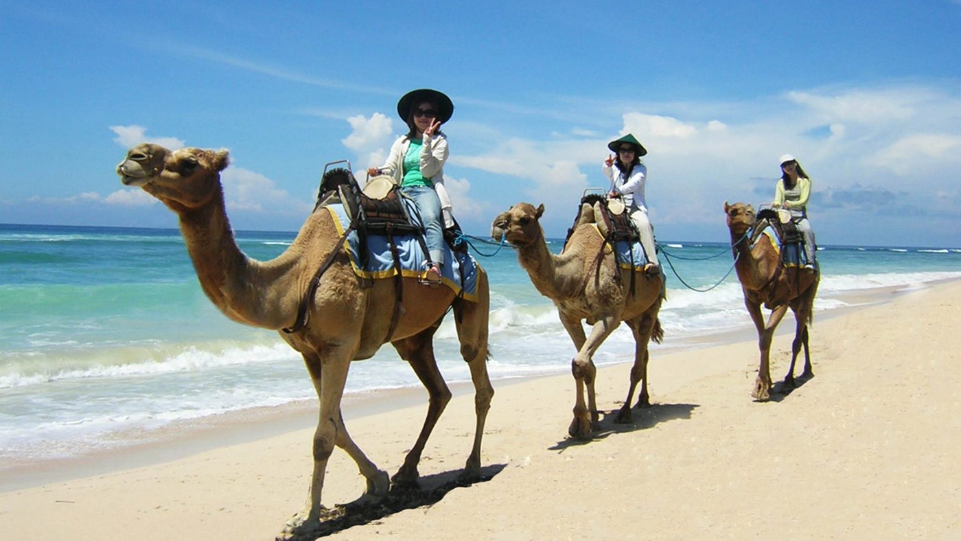 Lokasi wisata naik onta di Bali terletak di pantai Geger sawangan Nusa Dua.